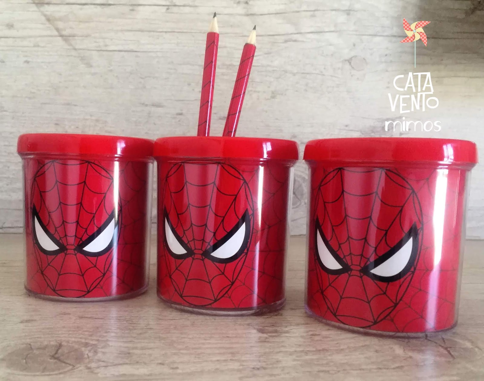 Linda lembrancinha para a festa de aniversário de 4 anos do Matteo! Porta-lápis do Homem Aranha!